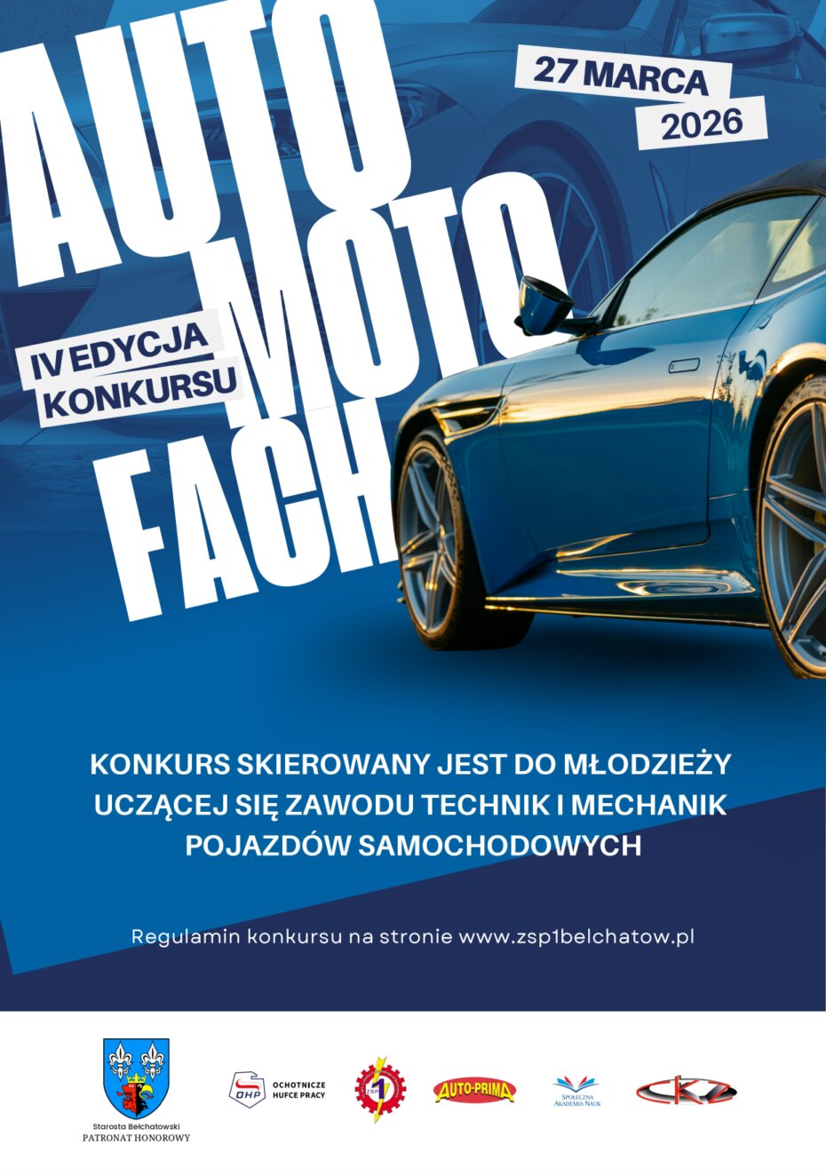 23 lutego 2024r. w Centrum Kształcenia Zawodowego w Bełchatowie odbył się finałowy etap II edycji konkursu „AutoMotoFach”. Organizatorami konkursu byli: Łódzka Wojewódzka Komenda OHP i Młodzieżowe Centrum Kariery w Bełchatowie, Centrum Kształcenia Zawodowego w Bełchatowie, Zespół Szkół Ponadpodstawowych nr 1 w Bełchatowie, Społeczna Akademia Nauk w Bełchatowie oraz Szkoła nauki jazdy „AUTO-PRIMA” w Bełchatowie. Patronat nad konkursem objęła Pani Dorota Pędziwiatr - Starosta Bełchatowski.