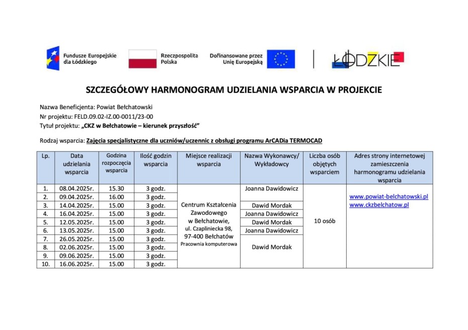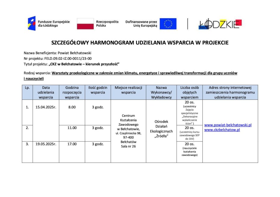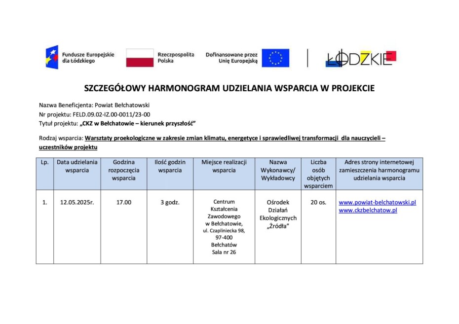 Fundusze Europejskie oraz CKZ w Bełchatowie (www.ckzbelchatow.pl),